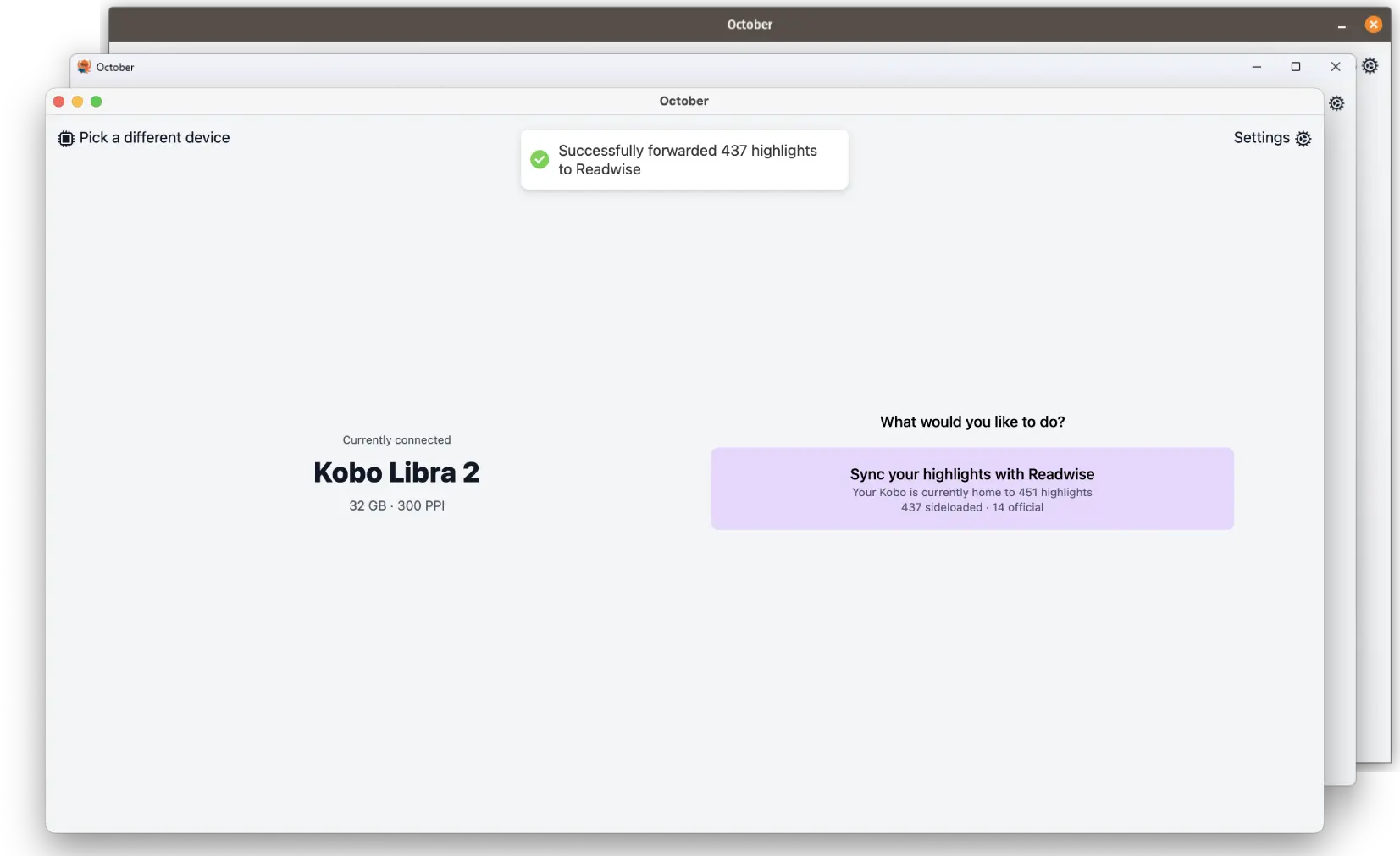 Octoberは、Kobo eReadersからハイライトを抽出し、簡単にReadwiseへ転送できる、シンプルなWailsアプリケーションです。